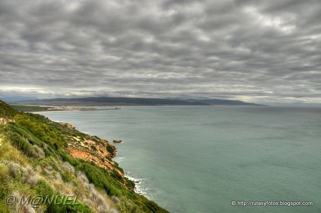 Muy pronto, si miramos atrás podemos ver el muelle pesquero de Barbate y la playa de la Hierbabuena.