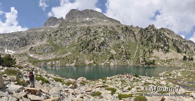Y llegamos al Ibón Gran de Batisielles. Aquello era una "feria". Arriba vemos Batisielles Sur, La Tuca de Mincholet y más lejano el Pico de Corbets ó Pico Perramó.